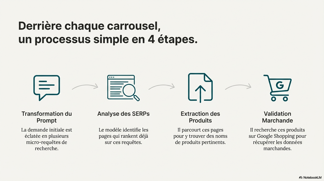 Point important : un carrousel Shopping est un résultat de validation croisée. Il favorise les produits qui “matchent” proprement à la fois dans les sources éditoriales et dans l’écosystème marchand.