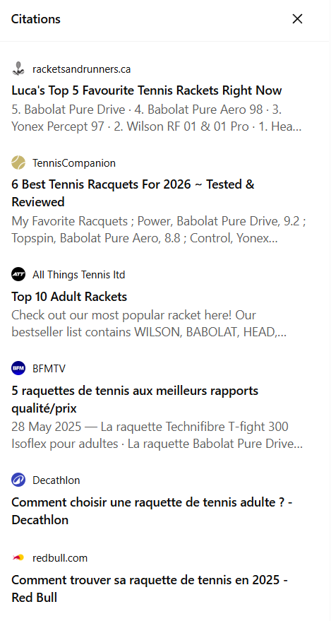 ChatGPT décompose le prompt en plusieurs requêtes internes afin d’identifier des pages qui rankent déjà sur Google et Bing, typiquement des guides d’achat, comparatifs, tests, forums ou listes “best-of”.