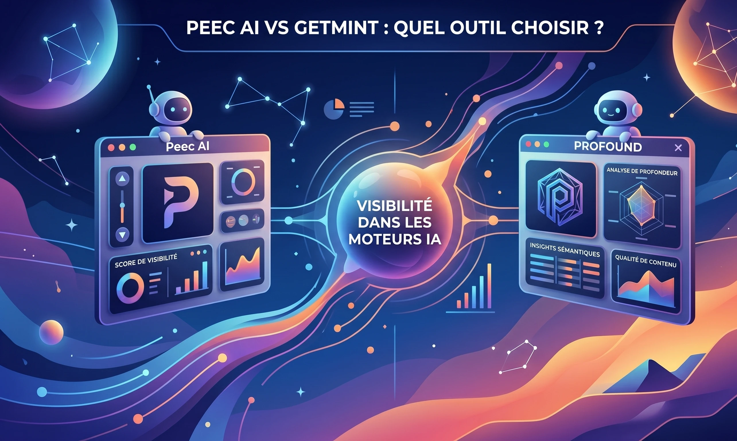 Le comparatif Peec AI vs Profound oppose deux approches de la visibilité dans les moteurs IA. Peec AI se concentre sur le monitoring GEO : visibilité, citations, sentiment, sources, benchmark concurrentiel et prompts. Profound adopte une logique plus large de plateforme AEO / GEO, avec Prompt Volumes, Answer Engine Insights, Agent Analytics et une lecture plus profonde de la demande IA.